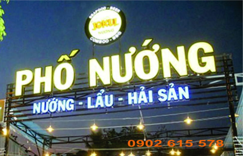 TP. HCM là Thành Phố có dân số nhiều nhất trong các tĩnh thành ở nước ta, nhà hàng ẩm thực vì thế mà phát triển, cạnh tranh khốc liệt thực phẩm tươi sạch đảm bảo vệ sinh an toàn thực phẩm của các nhà hàng, về thương hiệu hiệu. việc làm biển hiệu quảng cáo nhà hàng củng đặt lên hàng đầu vì biển hiệu quảng cáo nhà hàng được thiết kế đẹp, bố cục rõ ràng tinh tế sắc sảo, chuyên nghiệp nó sẽ thể hiện được nét riêng biệt, thương hiệu tạo nên hiệu ứng như tiếp thi trực tiếp vào bộ phận giới trẻ, và trung niên sau giờ làm việc, gặp gở bạn bè, tất niên, hội họp, sinh nhật, tổng kết cuối năm ..v.v...