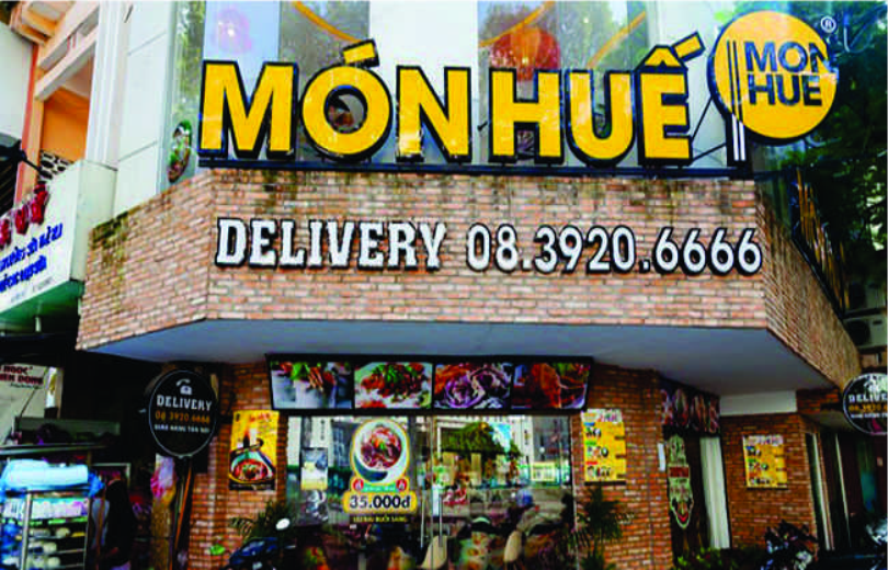 Biển nhà hàng món huế gấn đẹp trước mặt tiền khung săt và alu