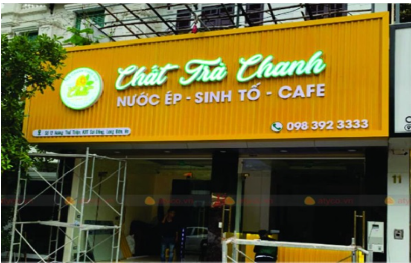Bảng hiệu sóng tôn (hay tole) Loại bảng hiệu được rất nhiều cửa hàng tin dùng lựa chọn trong những năm gần đây. Được sử dụng tole mạ kẻm sơn tĩnh điện, không gỉ được kết hợp với chữ nổi mica, inox hoặc alu hoặc đèn LED để tạo được sự nổi bật mới lạ.